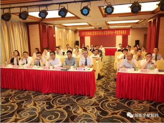 2017年4月8日-9日,海南全星制藥有限公司在海口寶駒大酒店召開2017年一季度營銷峰會。會議由公司營銷中心副總經理張煜先生主持,公司營銷中心總經理殷明先生、財務總監韓麗女士、營銷總監兼市場總監楊永先生、營銷總監關一文先生、營銷中心全體同仁和質量部同事及各省省區經理出席了本次會議。
