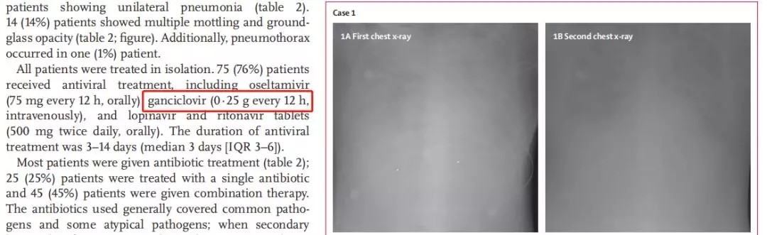 武漢同濟醫(yī)院專家在《Radiology》上發(fā)表的研究提到,1名42歲的患者在2020年1月1日住院,在此期間接受更昔洛韋、奧司他韋以及其他抗菌藥物治療,最終于2020年1月25日治愈出院。